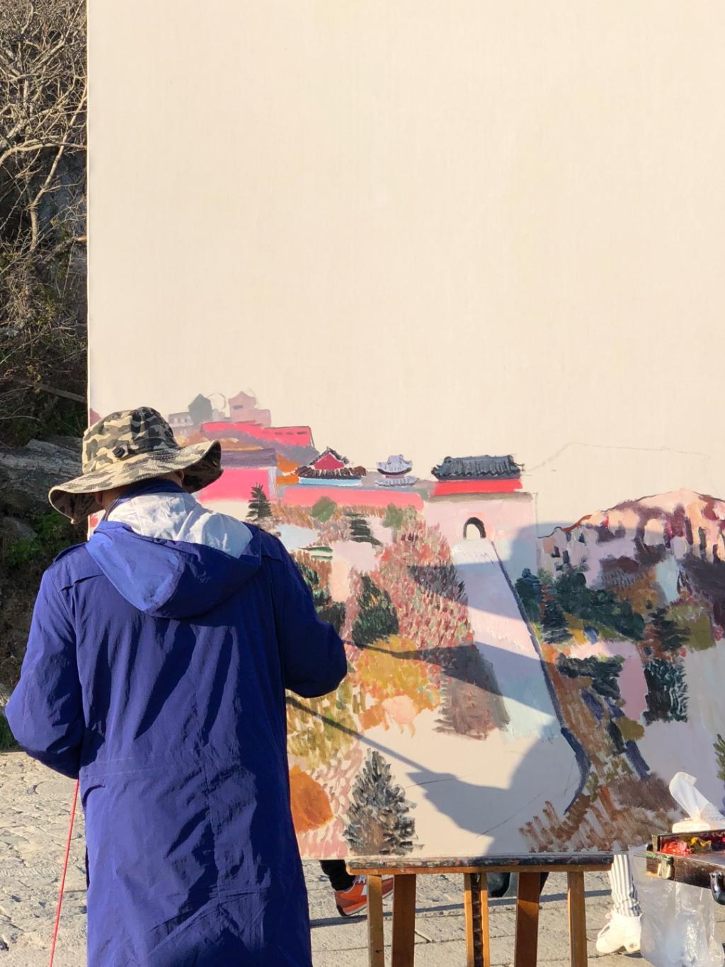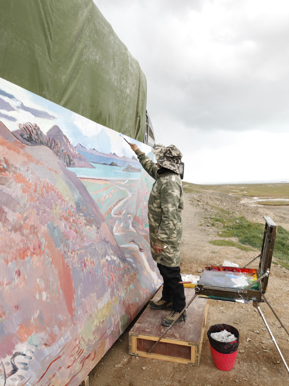 任教期间,王克举坚持“以写生为基,以写意为魂”,带领学生走遍全国近30个省市自治区,在黄土高原、江南水乡、雪域边疆等地的自然景观中探索油画语言的本土化表达。这种“行走式教学”不仅培养了学生的艺术感知力,也让王克举积累了丰富的写生经验。他说:“二十年的风景写生,让我对自然的结构、色彩和空间有了更深的理解,这也让我在构思每一处风景的选点、处理每一块画布的衔接时得心应手。”在人大艺术学院的经历,让他对艺术创作的社会价值有了更深刻的思考,黄河长卷的构想,也正是在这种思考中逐渐清晰的。