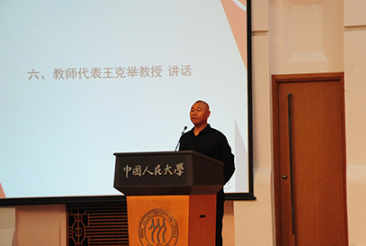 此前,在中国人民大学艺术学院2015届学位授予仪式暨毕业典礼上,王克举寄语同学们:“艺术是人民生活的精神动力、文化传承的重要载体,艺术与时代具有共生关系。作为人大学子,希望大家秉持‘为人民而艺术’的初心,用艺术语言回应社会关切,以美学力量发展文化事业。”