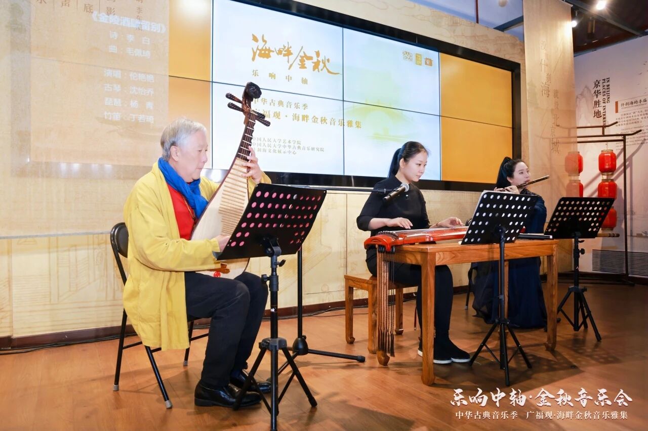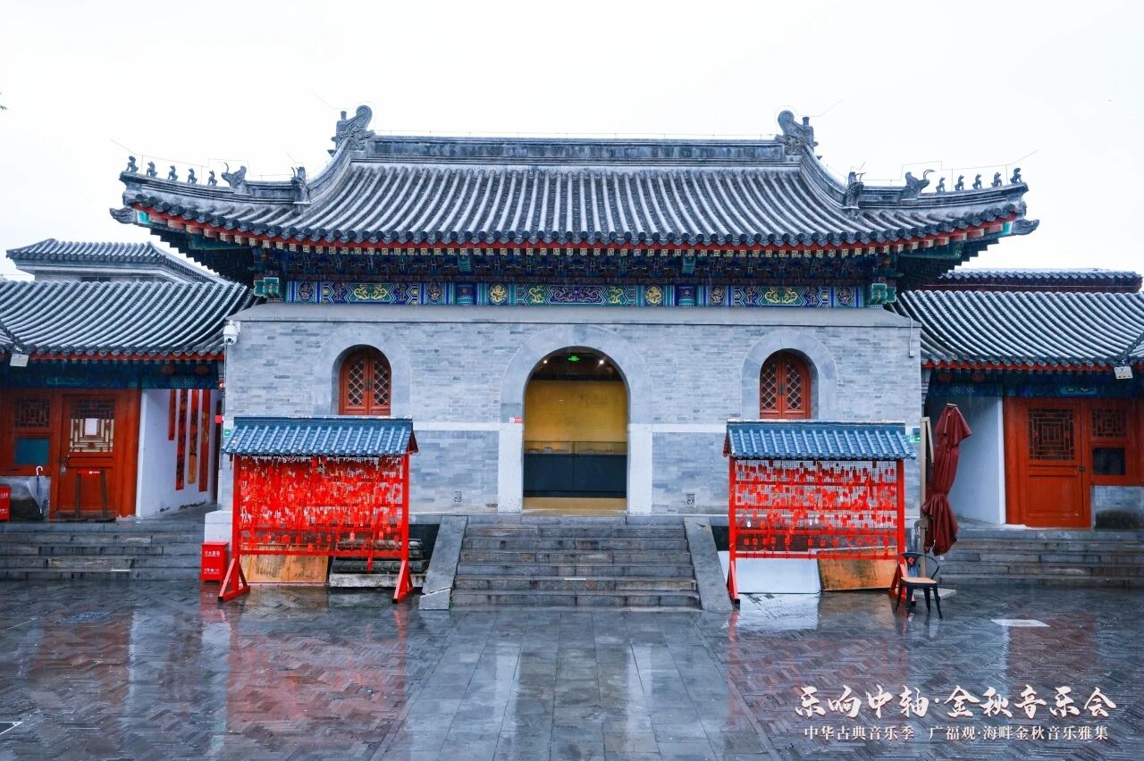 寒露凝霜,古韵流芳。2025年10月8日,恰逢寒露节气,“乐响中轴·四季音乐雅集”海畔金秋音乐雅集,于北京中轴线畔广福观温情启幕。作为该品牌项目的秋季核心活动,本场雅集由中国人民大学艺术学院、中华古典音乐研究院与什刹海文化展示中心联合主办,以音乐为桥串联古今中外,在古观之中奏响“人民艺术为人民”的时代乐章。中国人民大学校长林尚立,副书记、副校长王易等嘉宾莅临现场,共赏雅音。