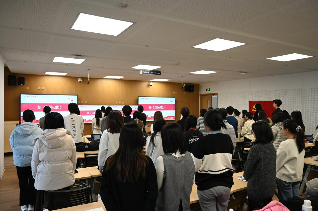 活动在庄严的《国际歌》中拉开序幕。全体同志齐声高唱,铿锵旋律回荡会场,进一步坚定了理想信念,营造出庄重而奋进的学习氛围。