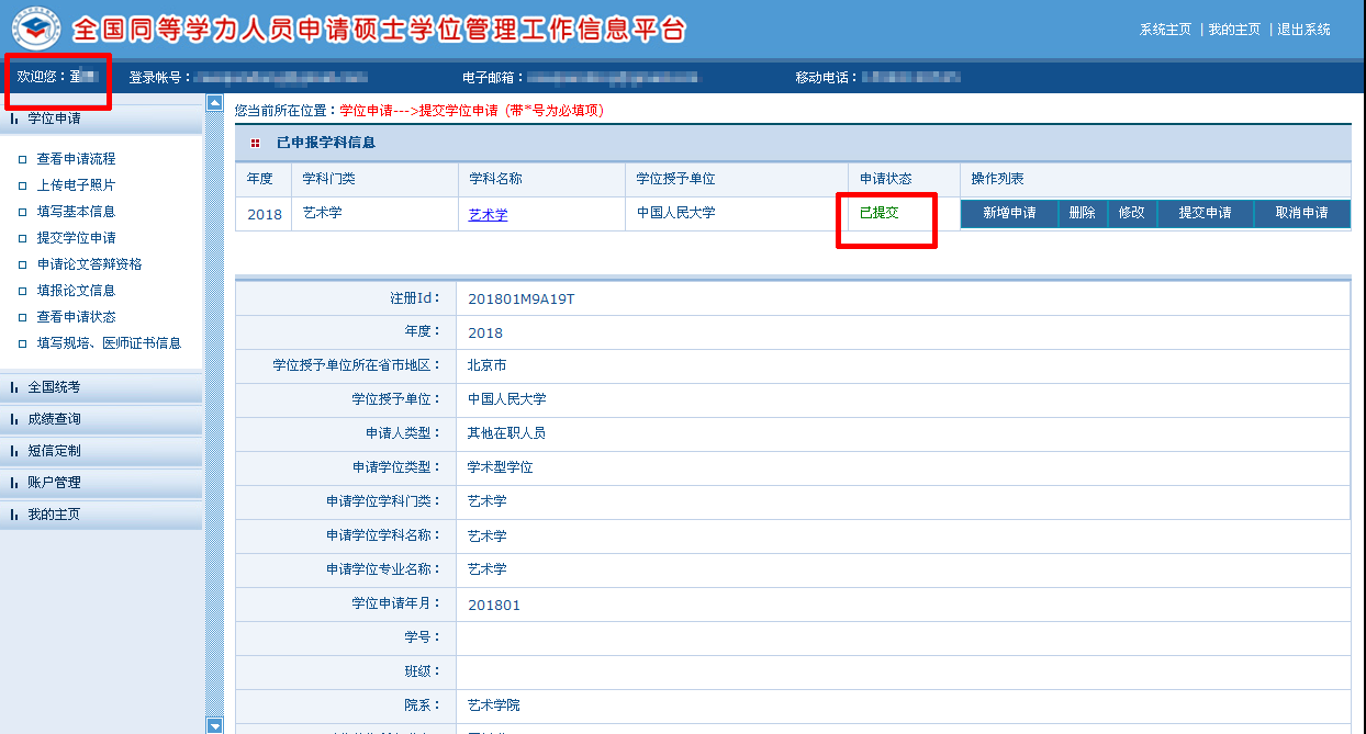 个人信息完成后,下一步提交学位申请信息,请参照以下说明准确填写: