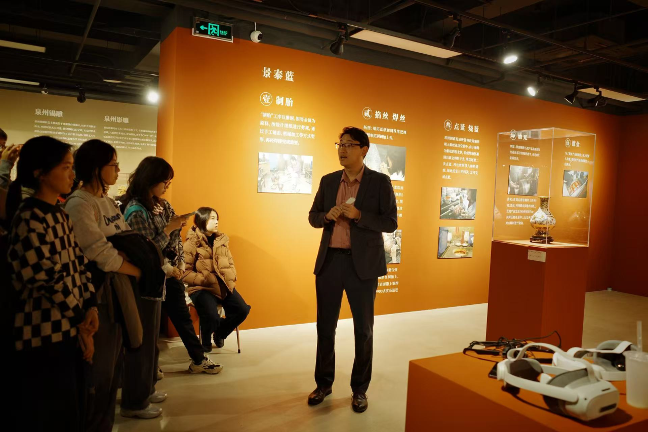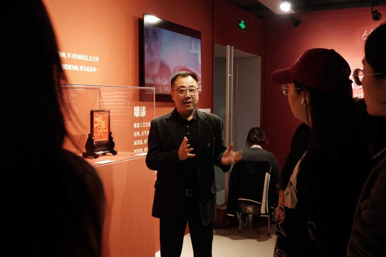 在“人民艺术·匠心传承”非物质文化遗产主题展现场,设计系教师刘绍龙着重介绍了艺术学院非物质文化遗产多模态数字资产建设知识工程在非遗传承中的创新应用,并围绕非遗的抢救性保护、系统性传承与创新性传播,展开深入浅出的详细讲解。从燕京八绝巧夺天工的精湛技艺,到国礼设计独具匠心的巧妙构思,从传统工艺中材质美学的细腻呈现、动作美感的灵动展现,到功能价值的深刻体现,无一不蕴含着“人民艺术”的真谛。